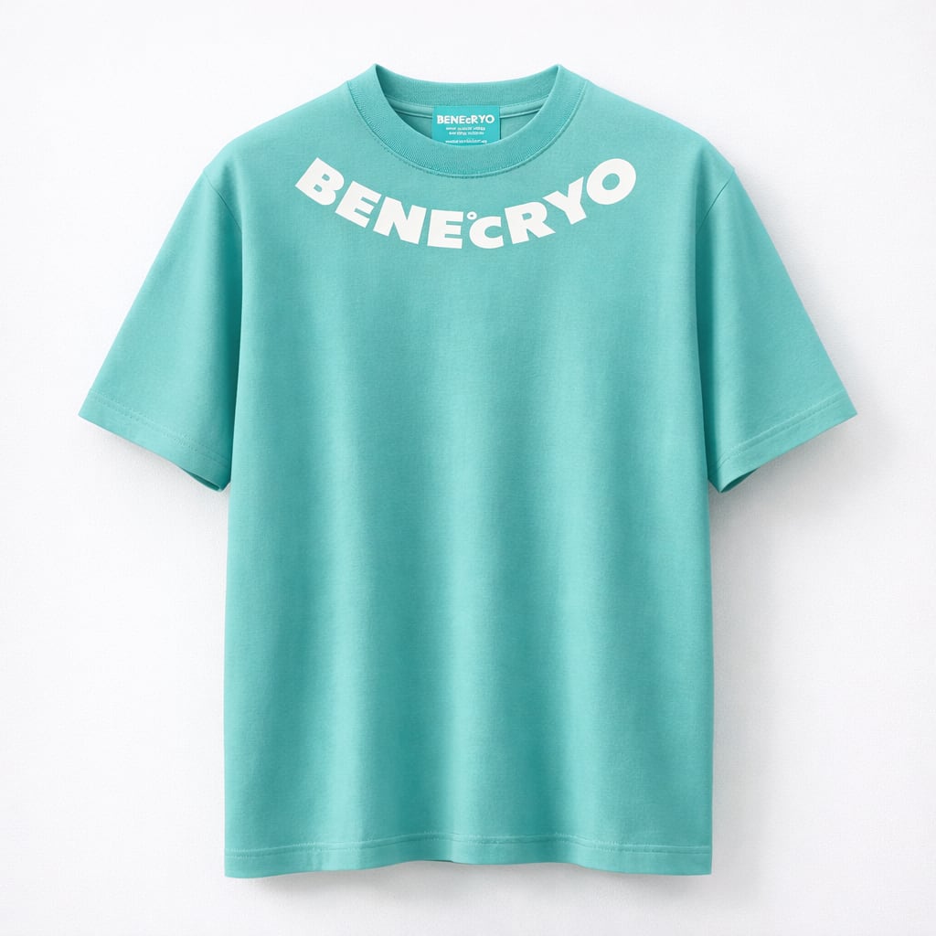 BENE℃RYO(ベネクリオ)NECK LOGO Tシャツ ティファニー×ホワイト