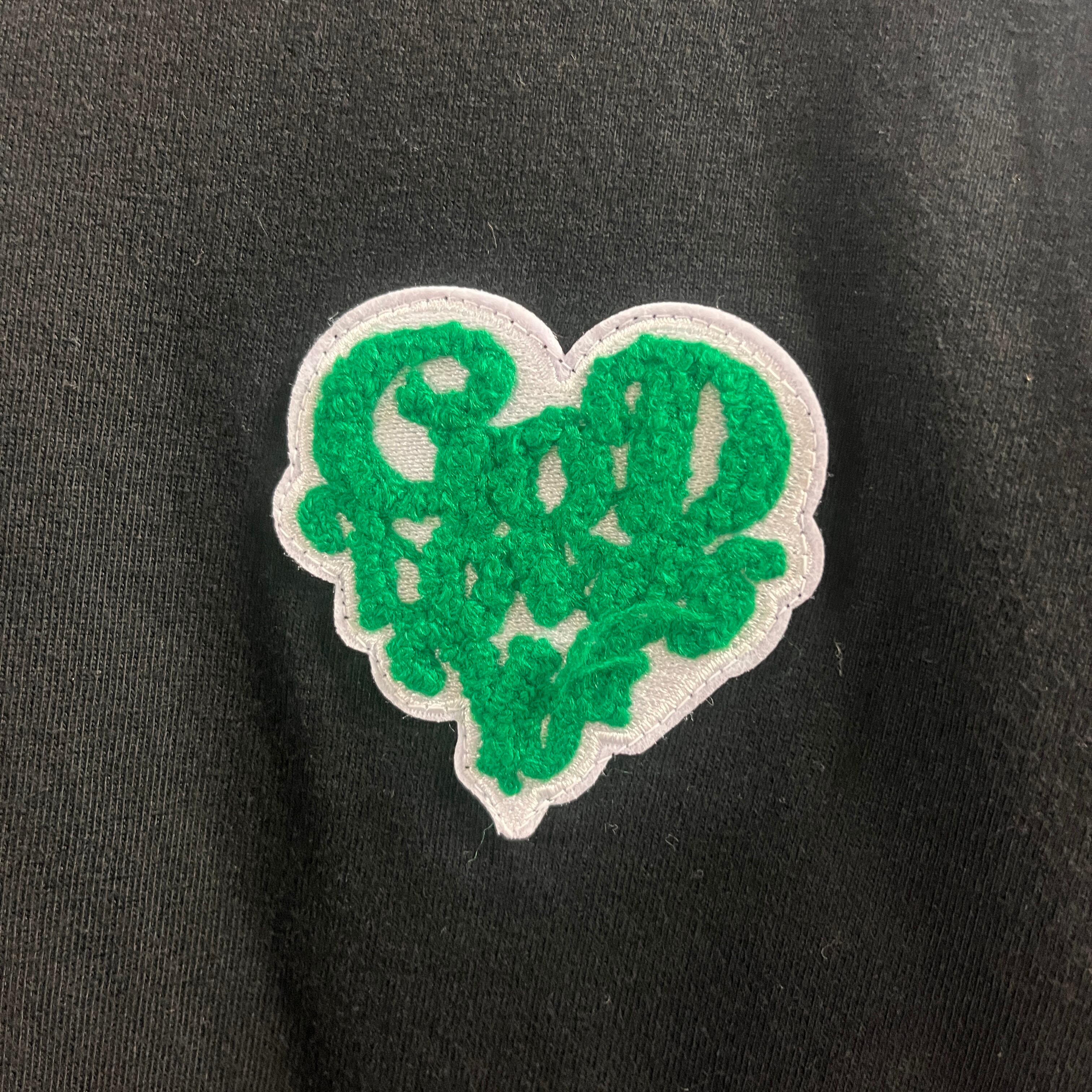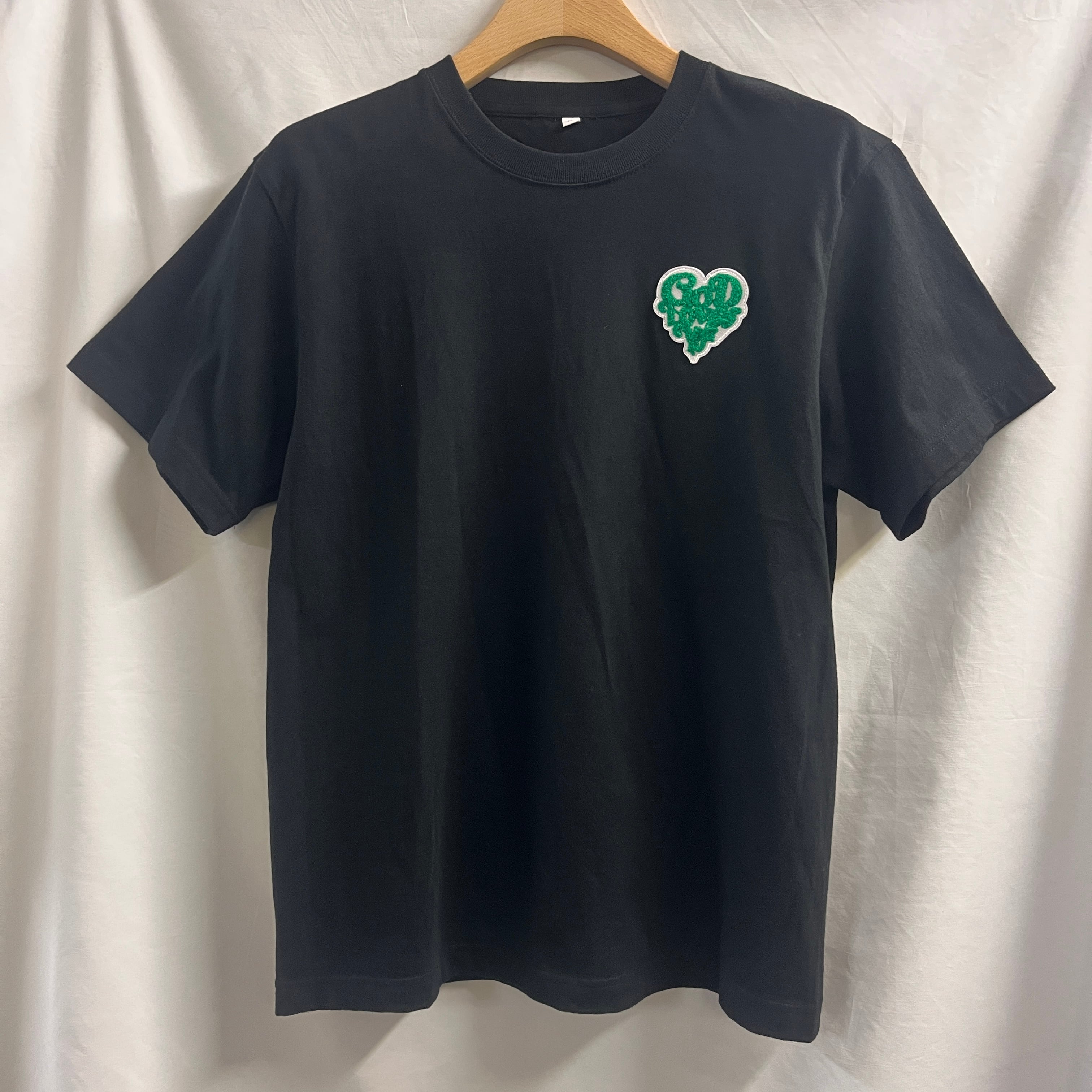 通常はGOD LOVES YOU定番のロゴ刺繍は赤色の所をBENE OSAKAカラーの緑色へと変更。