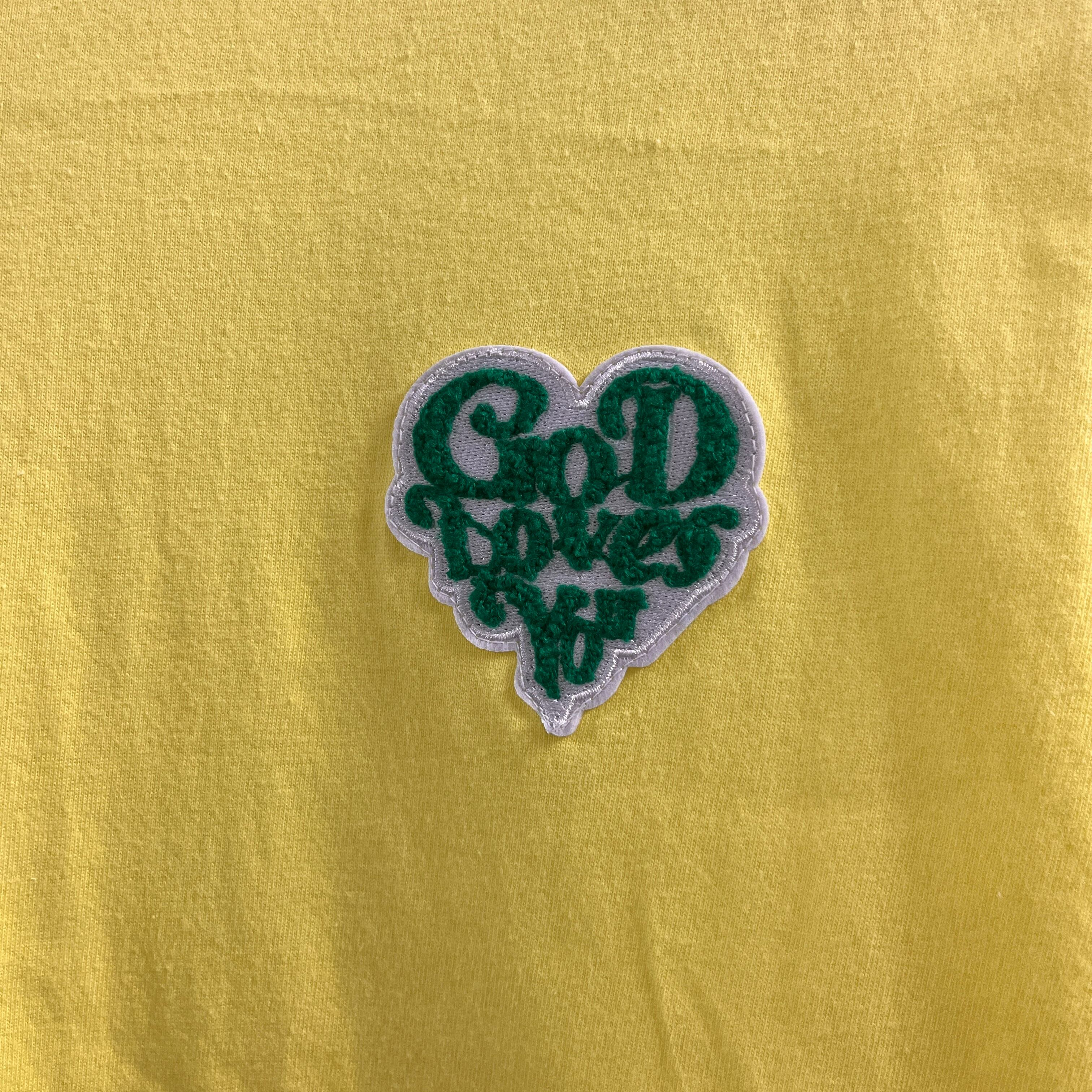 通常はGOD LOVES YOU定番のロゴ刺繍は赤色の所をBENE OSAKAカラーの緑色へと変更。