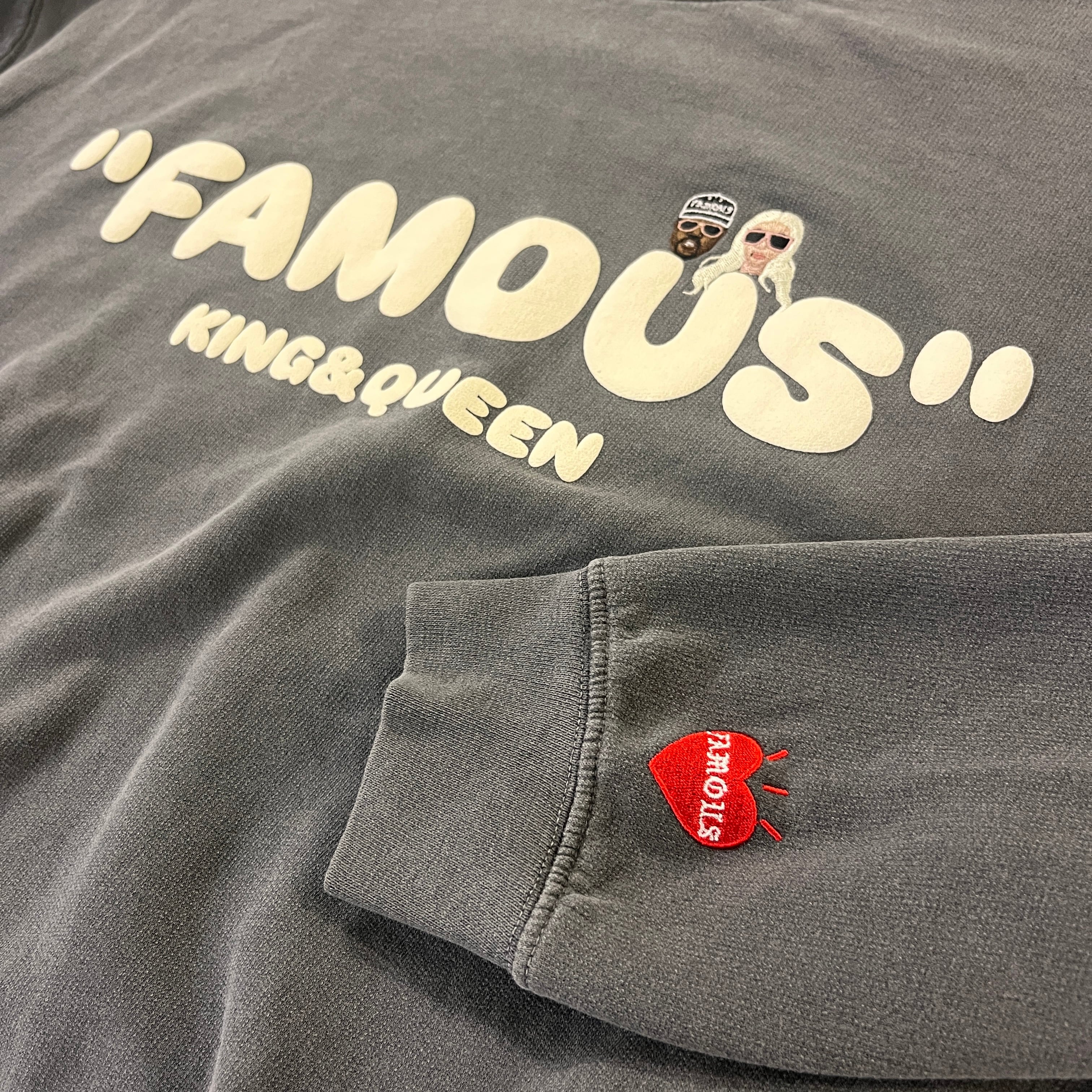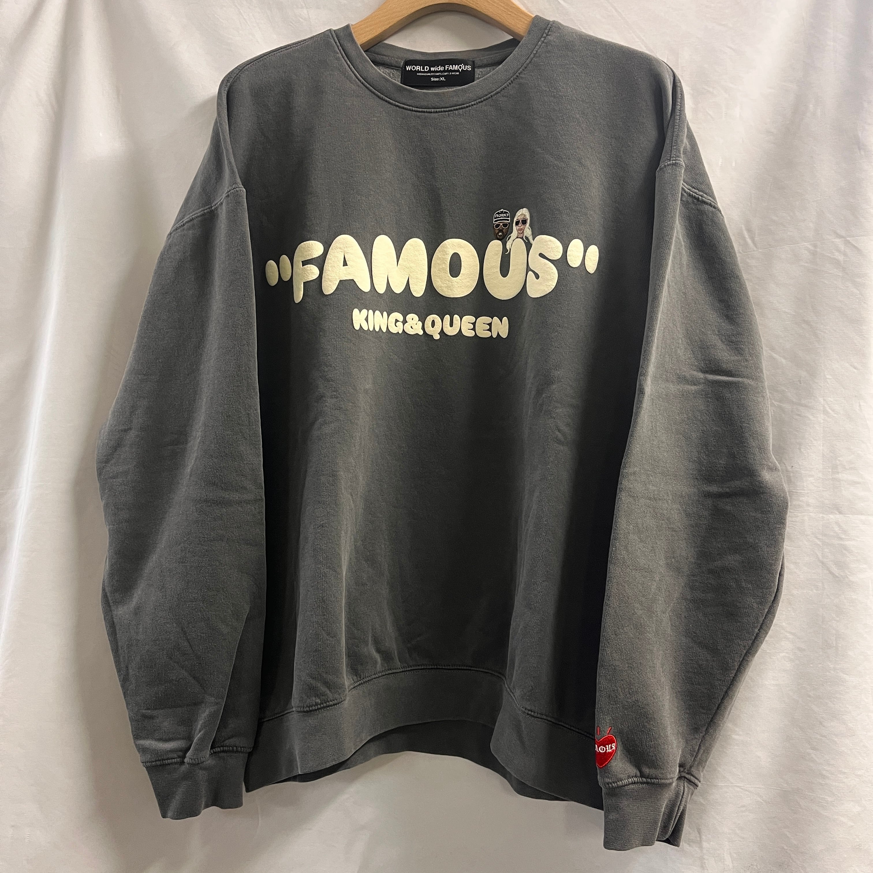 ・WORLD wide FAMOUS の定番デザイン KQ crewneckをBENEカスタムし左袖にFAMOUSハートを刺繍、後ろ首にはBENE OSKタグを縫い付けた仕様のトレーナになります。