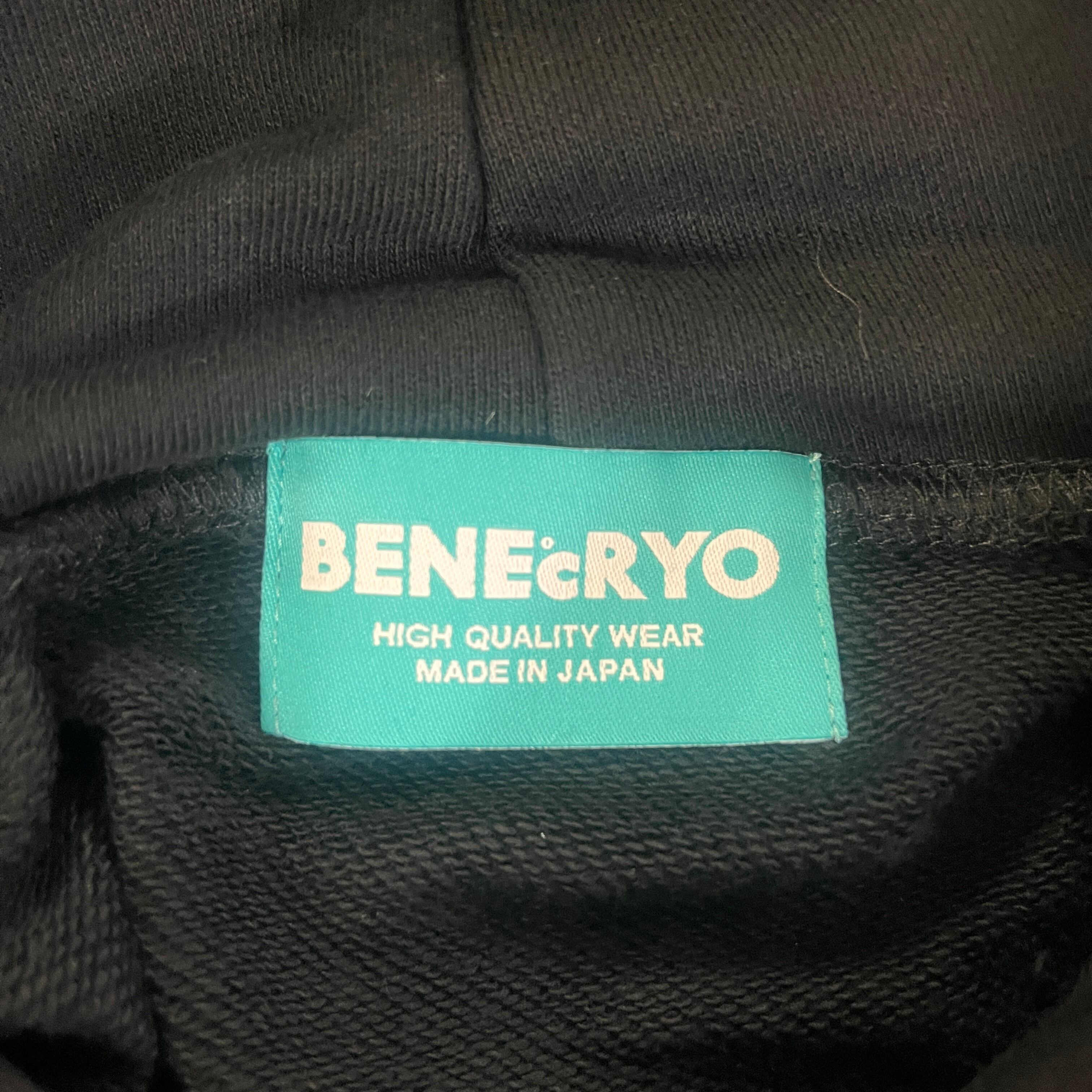 BENE℃RYO(ベネクリオ)NECK LOGO パーカー ブラック×ホワイト