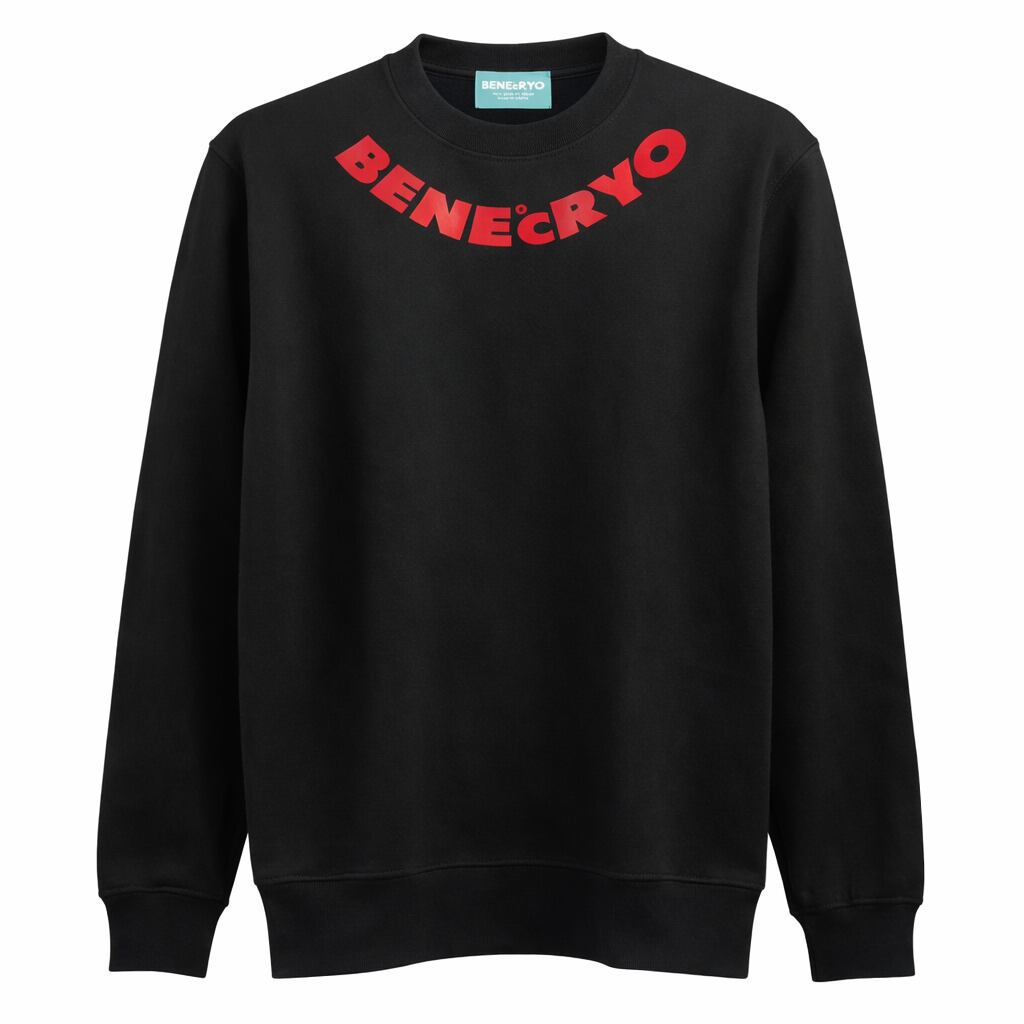 BENE℃RYO(ベネクリオ)NECK LOGO トレーナー ブラック×レッド