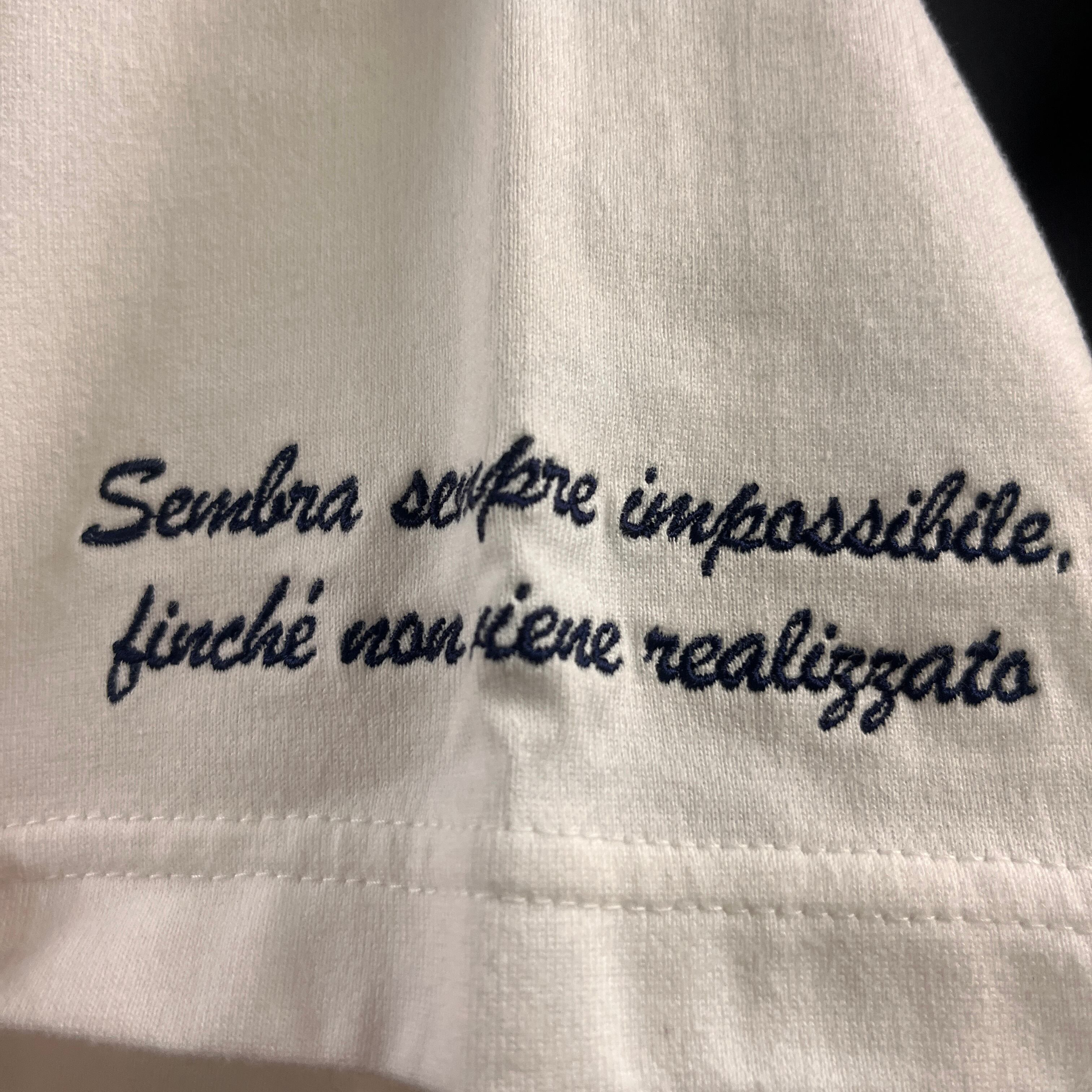 フロントには「L4K3」と「Monte Isola (モンテ・イーゾラ)」のロゴと袖口には刺繍をあしらったベーシックなTシャツです。