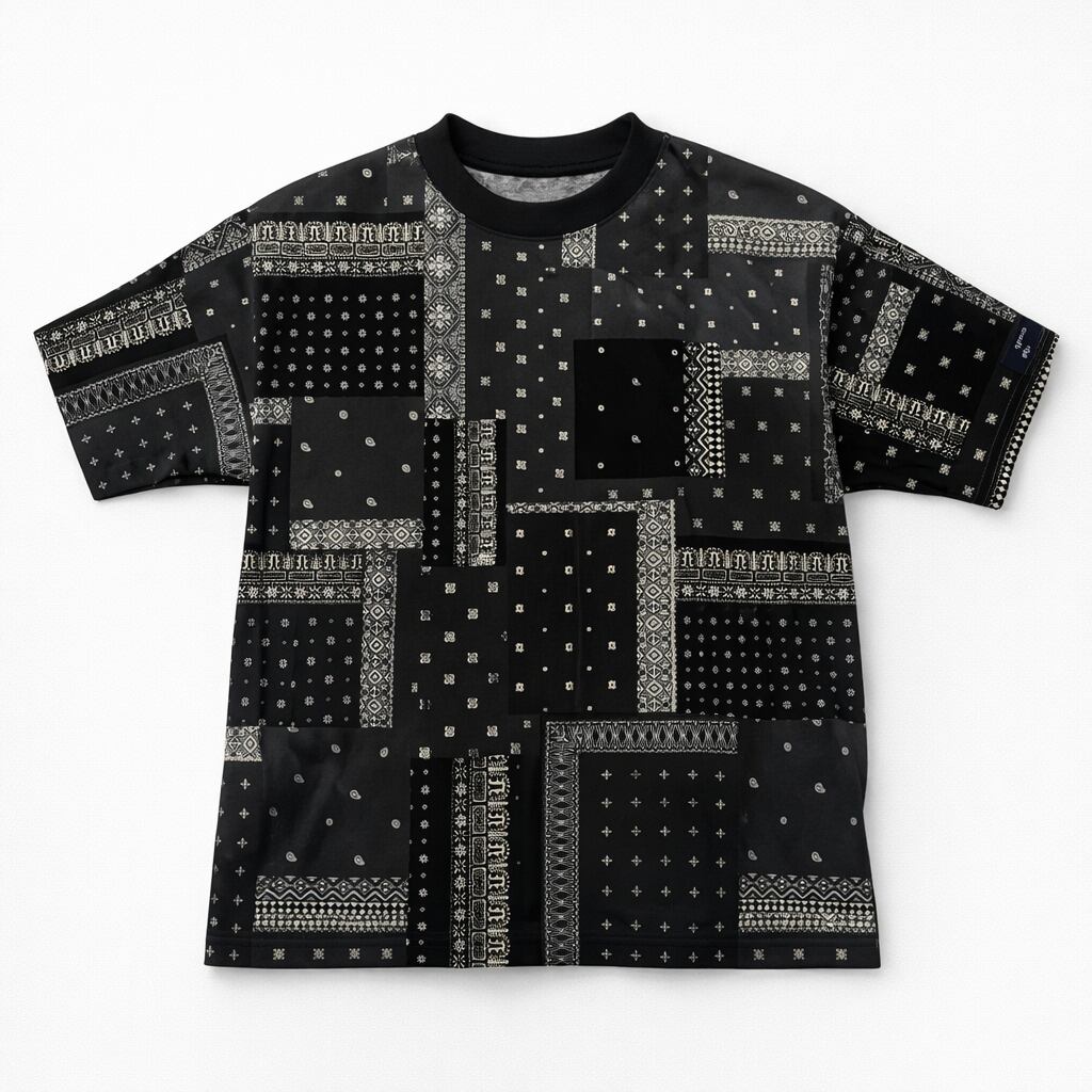 オーガニックコットンを使用したバンダナ柄オーバーサイズTシャツ。