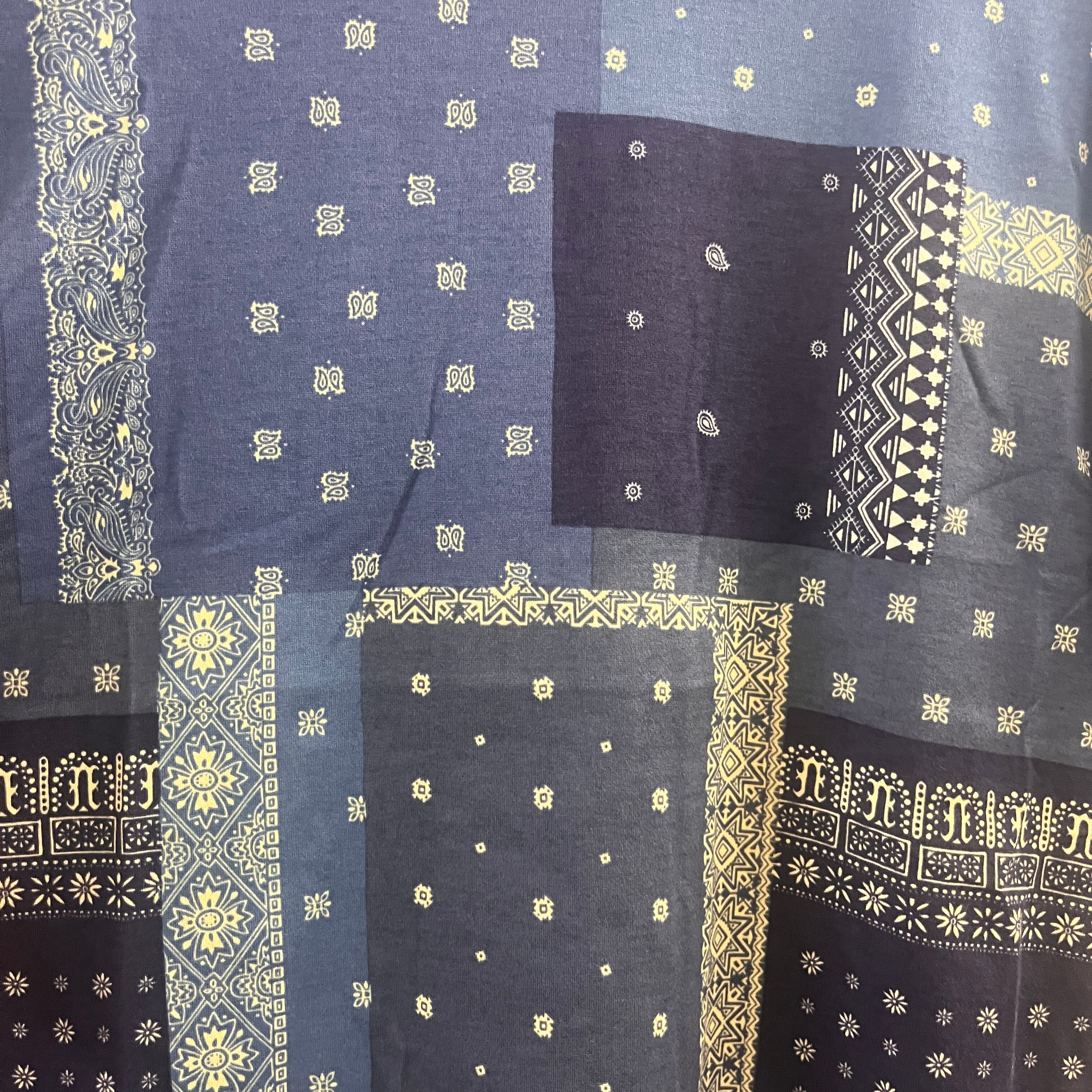 バンダナペイズリーをパッチワークしたかのようなプリント。