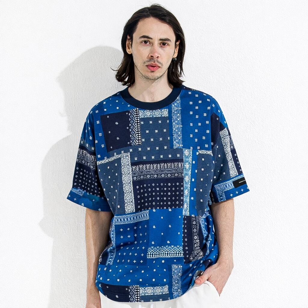オーガニックコットンを使用したバンダナ柄オーバーサイズTシャツ。