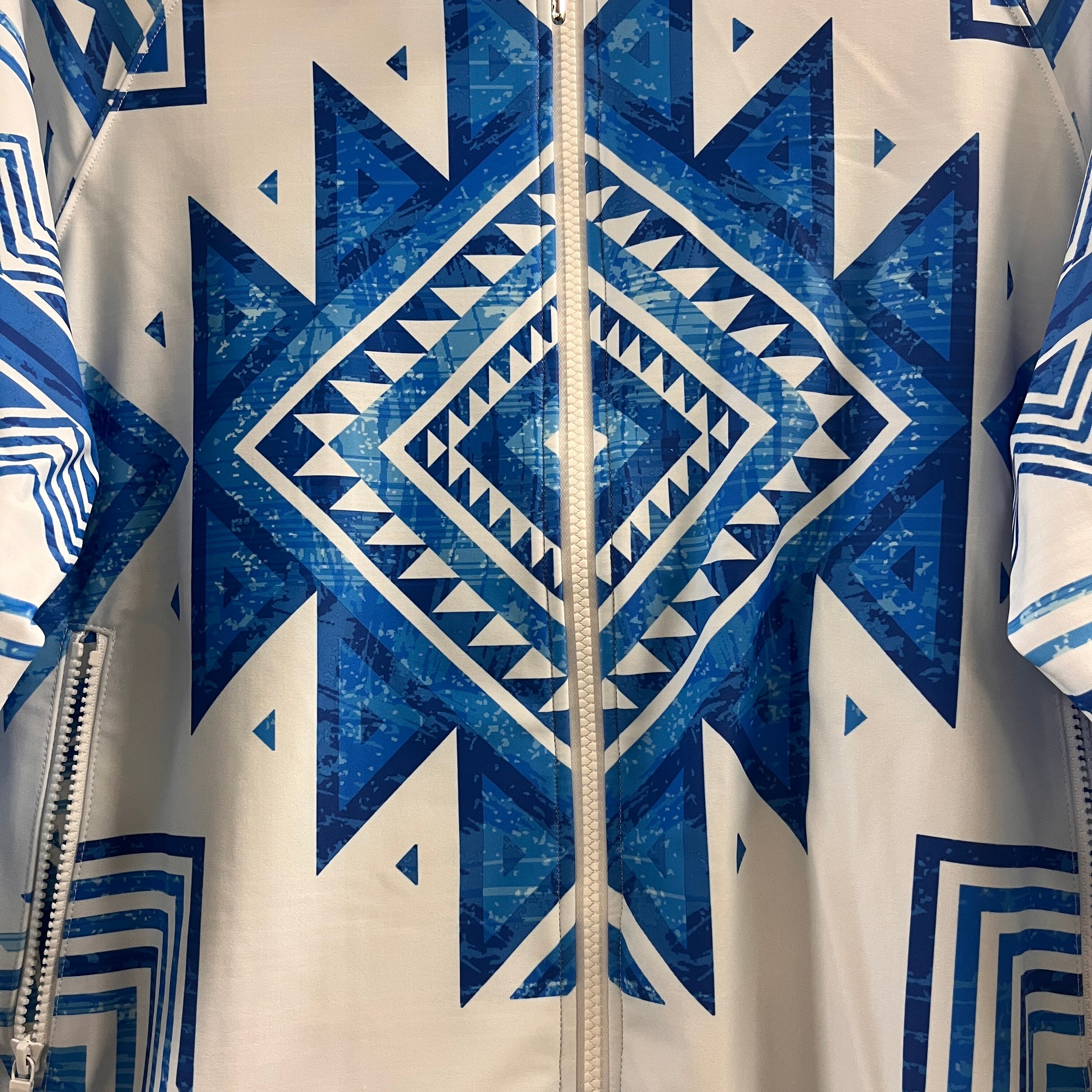 ヴィンテージネイティブ柄を構成し、古着アメカジの要素をスポーティーな素材に落とし込んだ、あまり例を見ないアイテムに仕上げました。
