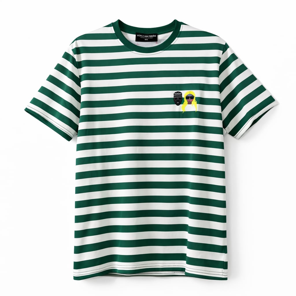 WORLD wide FAMOUS (ワールドワイドフェイマス) KM TEE BENE別注ボーダーTシャツ グリーン×ホワイト