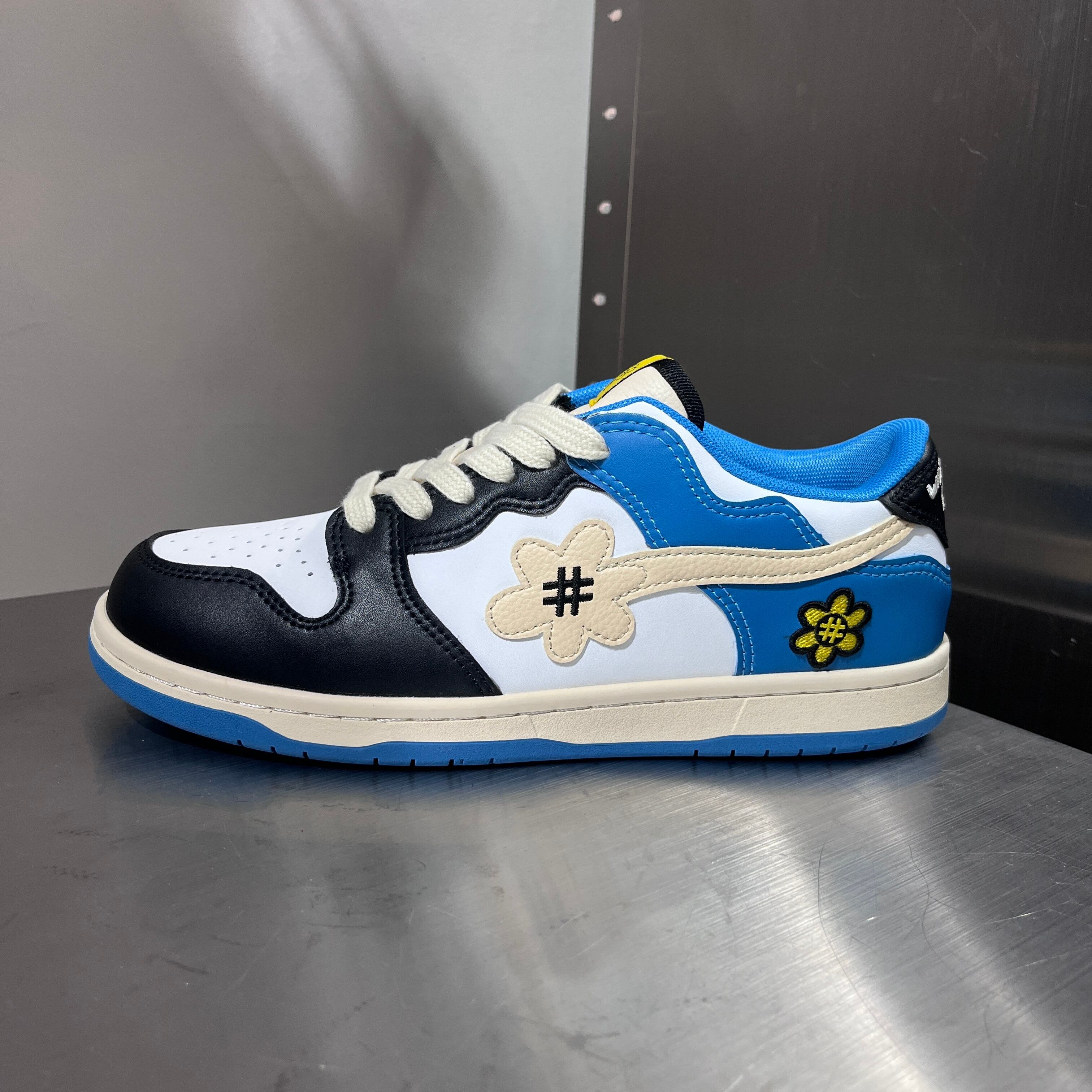 スニーカーのカラーパレットは雷と稲妻の劇的な相互作用を反映しています。深いブラックは嵐の前に立ちはだかる不気味な雲を表しています。鮮やかなブルーは雷のような電光を捉え、デザインに生き生きとしたエネルギーを加えています。歩くたびに、靴底が最適なショック吸収と反応性を提供し、履く人は足元で雷の共鳴を感じることでしょう。