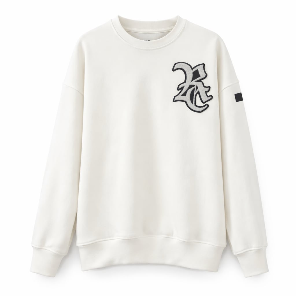 RC CHENILLE VELOURS FLEECE DROP TRAINER / RC38-C-004裏起毛刺繍ワッペントレーナー