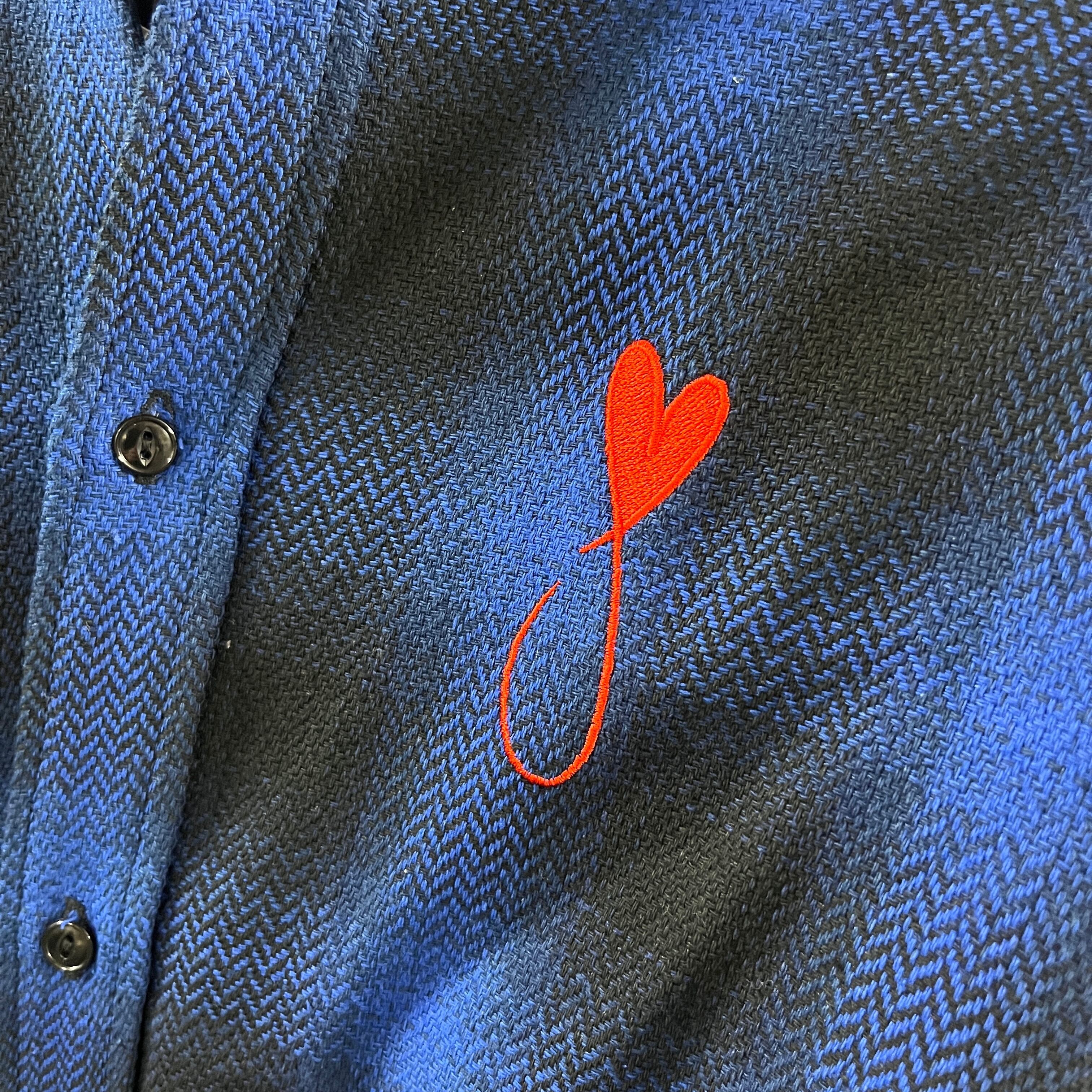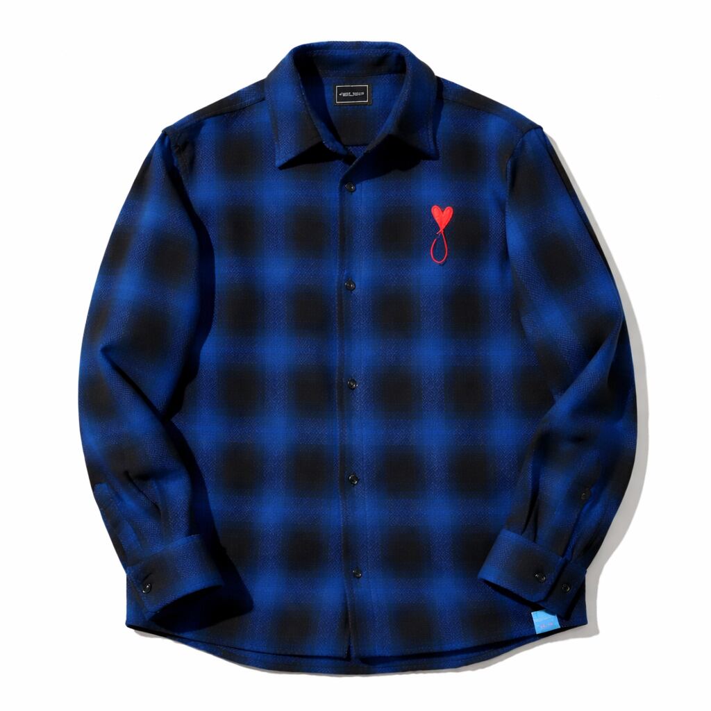 MAISON HONORE (メゾンオノレ) TIPHANIE CHECK SHIRT ハートフィッシュ 刺繍 ブルー×ブラック