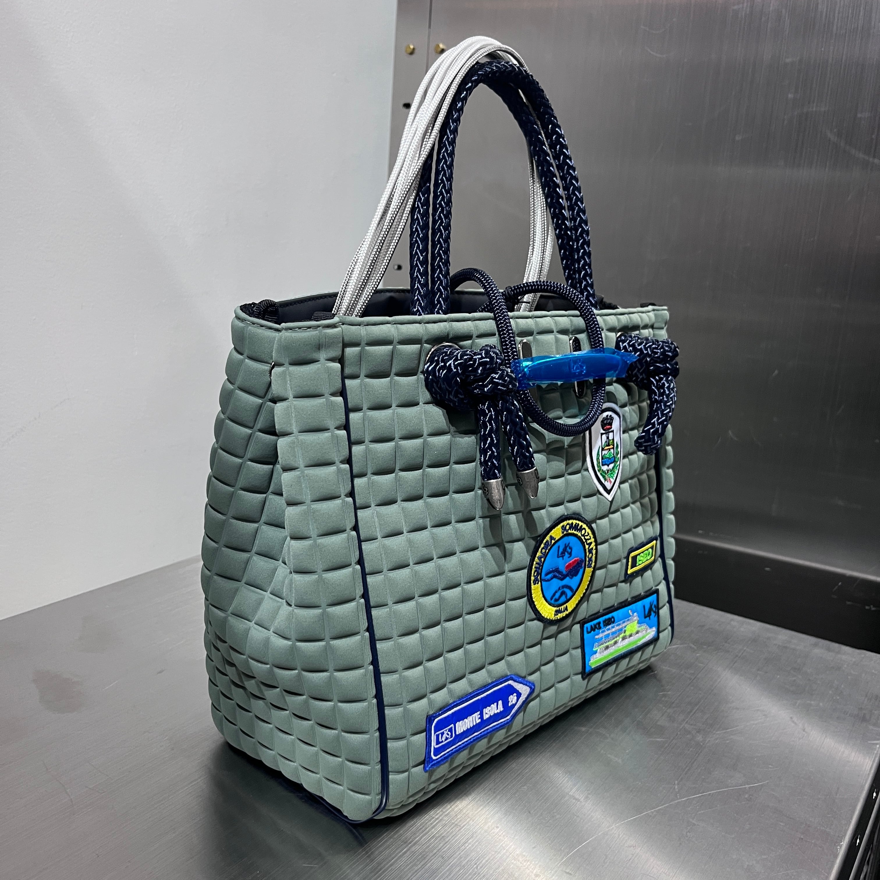 バッグの生地にはウェットスーツにも使える柔軟で丈夫なネオプレン素材を使用。
