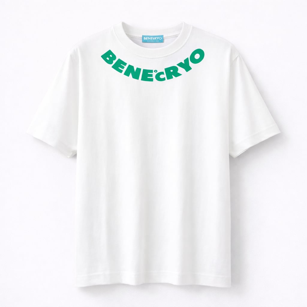 BENE℃RYO(ベネクリオ)NECK LOGO Tシャツ ホワイト×グリーン