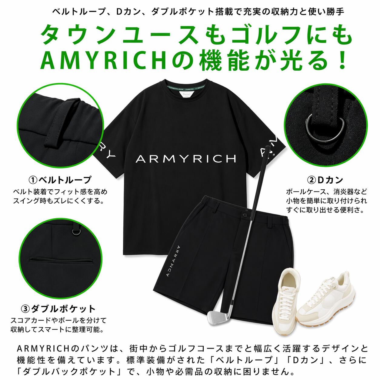・ARMYRICH(アーミーリッチ)ストレッチナイロンTシャツセットアップ